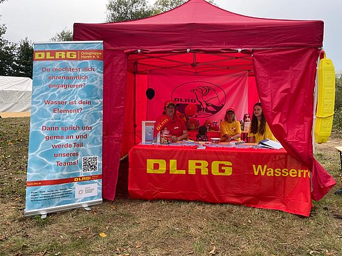 Außerdem hatten wir in diesem Jahr erstmalig einen eigenen Stand bei den Püntetagen. Dort haben wir viele nette Gespräche mit Groß und Klein geführt. Wir konnten von der ehrenamtlichen Arbeit in unserer Ortsgruppe berichten und all eure Fragen rund um unseren Verein beantworten. Unsere Malstation, bei der die Baderegeln ausgemalt werden konnten, wurde auch gut genutzt.